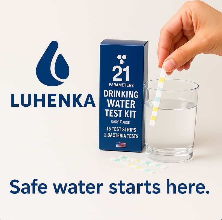 Luhenka empowers you to take control of your water quality at home or in the office. Our easy to use Drinking Water Test Kits analyze up to 21 key parameters like chlorine, lead, pH and bacteria in under a minute, so you can be confident every drop is safe.